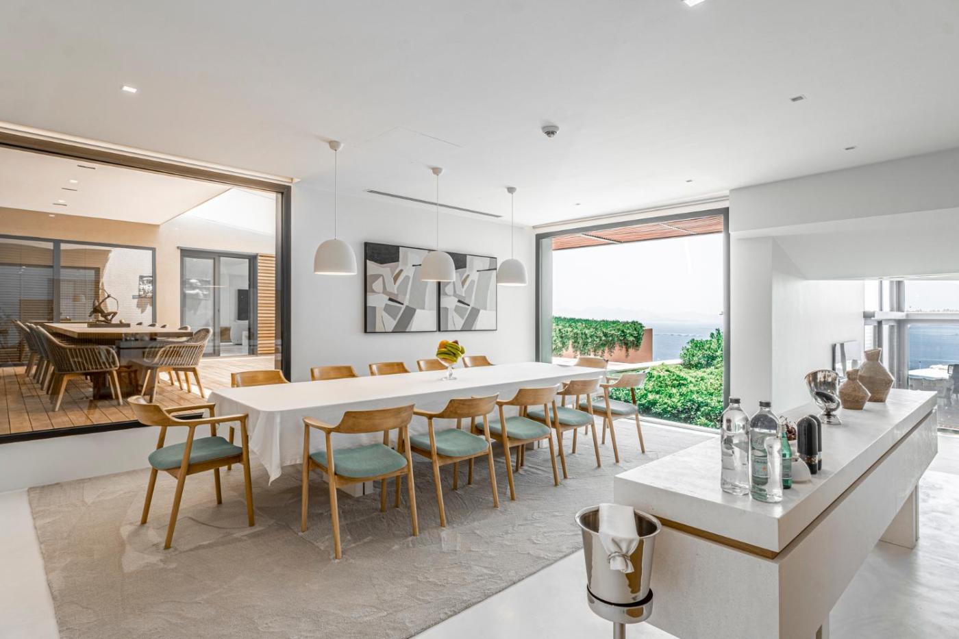 Villa with Sea View. This villas special features are the pool with a view and the sauna. Featuring a private entrance, this air-conditioned villa is comprised of 2 living rooms, 8 separate bedrooms and 9 bathrooms with a bath and a shower. Guests will find a stovetop, a refrigerator, a dishwasher and an oven in the kitchen. The villa also has a barbecue. The spacious villa offers a flat-screen TV with streaming services, a washing machine, soundproof walls, a minibar as well as sea views. The unit offers 12 beds.